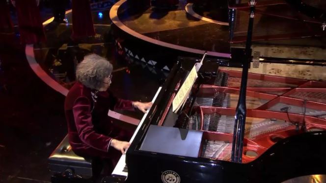 央视《经典永流传》年度盛典节目请来了一位88岁耄耋老人,这人有着极高的造就,此人正是新中国第一代钢琴演奏家——巫漪丽,巫漪丽老人在舞台上无比的耀眼,当她苍老的手重现《梁祝》经典,现场为之安静,以一曲《梁祝》赢得了全场观众的喝彩和致敬,《梁祝》对巫漪丽老人来说是就像自己的孩子,《梁祝》的首位钢琴伴奏缩谱编写者与首演着正是巫漪丽老人,老人用了自己59年的时光里,用琴键诉说着中国凄美的爱情故事,老人含着泪水弹完《梁祝》,主持人撒贝宁说:什么时候登上巅峰都不晚!她的一生正是印证了这句心酸的话。