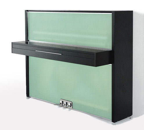 细节特点。Vitrea立于高光镀铬的钢脚上。顶盖具有三角钢琴的特点是从上打开,以便能将声波更好地在室内传播。它的灵感是来自于大都市现代化建筑的玻璃幕墙:立面:亚光、清晰、透明。